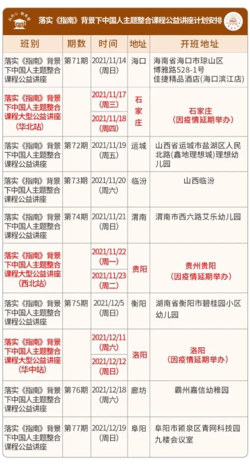 ●落实《指南》背景下中国人主题整合课程公益讲座计划安排