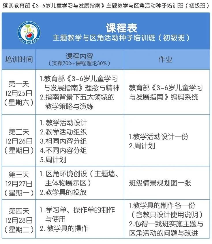 此培训为4日线下教学。课程设计为让老师熟悉主题教学活动与组织 ,老师一边学习一边实践应用,将理论与实践深度结合。