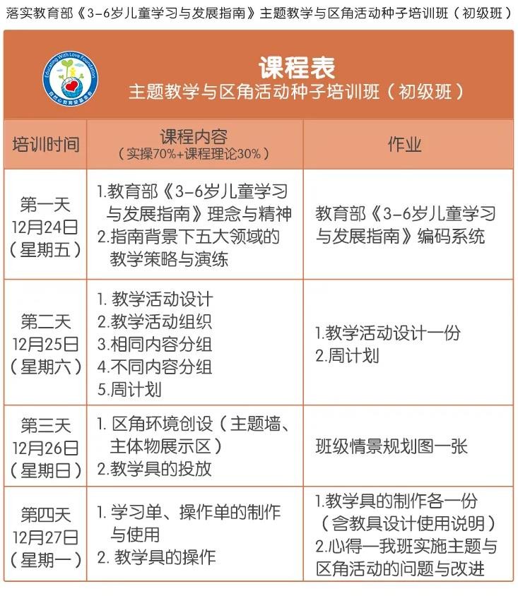 此培训为4日线下教学。课程设计为让老师熟悉主题教学活动与组织 ,老师一边学习一边实践应用,将理论与实践深度结合。